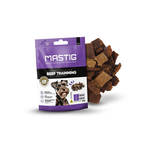 Dicas de vendas:  Apresente o Beef Training, um mix exclusivo de todos os bifinhos da linha Mastig, cortados em pequenos pedaços, perfeitos para treinamentos de pets. Com sabores variados, esses petiscos irresistíveis oferecem uma recompensa deliciosa e prática, ideal para incentivar o aprendizado e o bom comportamento dos cães. Além de saborosos, os pedaços do Beef Training são fáceis de manusear, tornando o processo de treino mais eficiente e divertido. Cada mordida é uma explosão de sabores que os cães adoram, garantindo foco e motivação durante os exercícios. Com essa opção prática e nutritiva, você oferece aos clientes uma solução perfeita para o adestramento, reforçando a confiança na sua marca com produtos de qualidade e versatilidade.